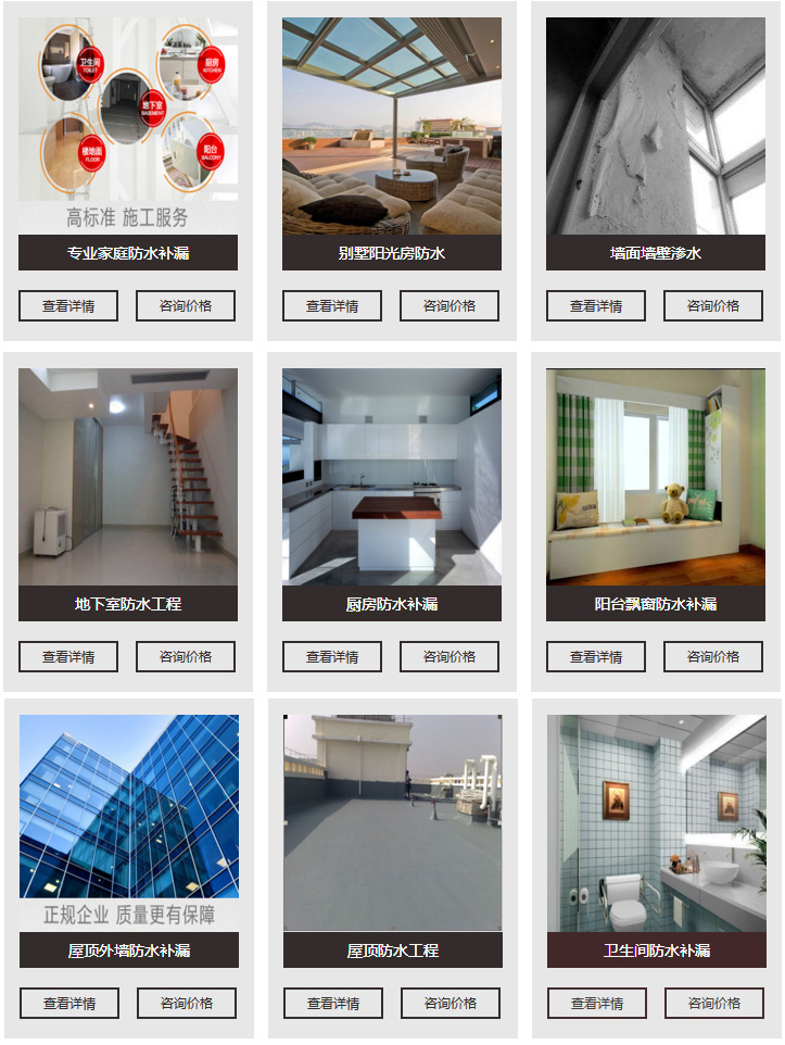 2、公司针对卫生间和厨房渗漏现状提供整套的防水补漏解决方案,除了对已经漏水的部位进行封堵外,还重点通过建立建筑物内层防水、排水结构的方法来确保长期的维修效果。